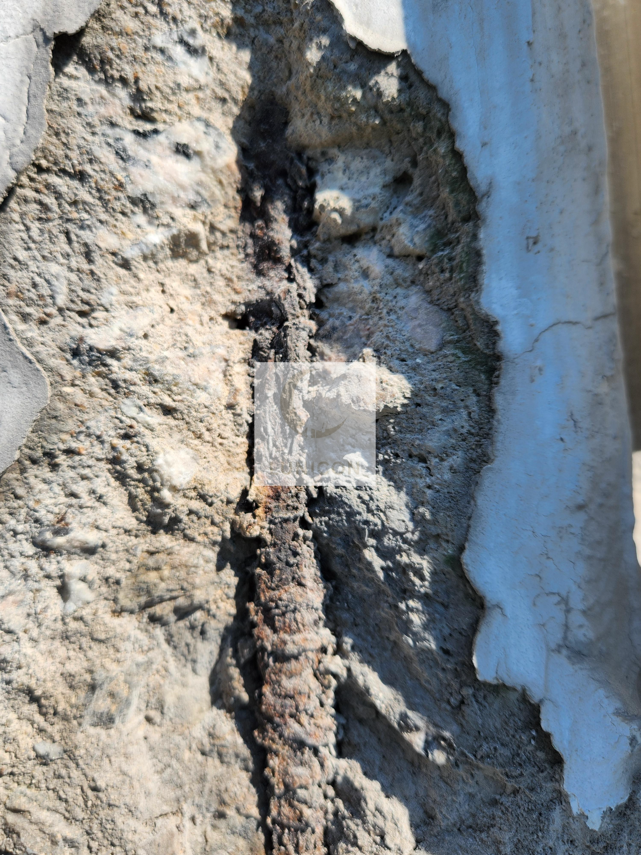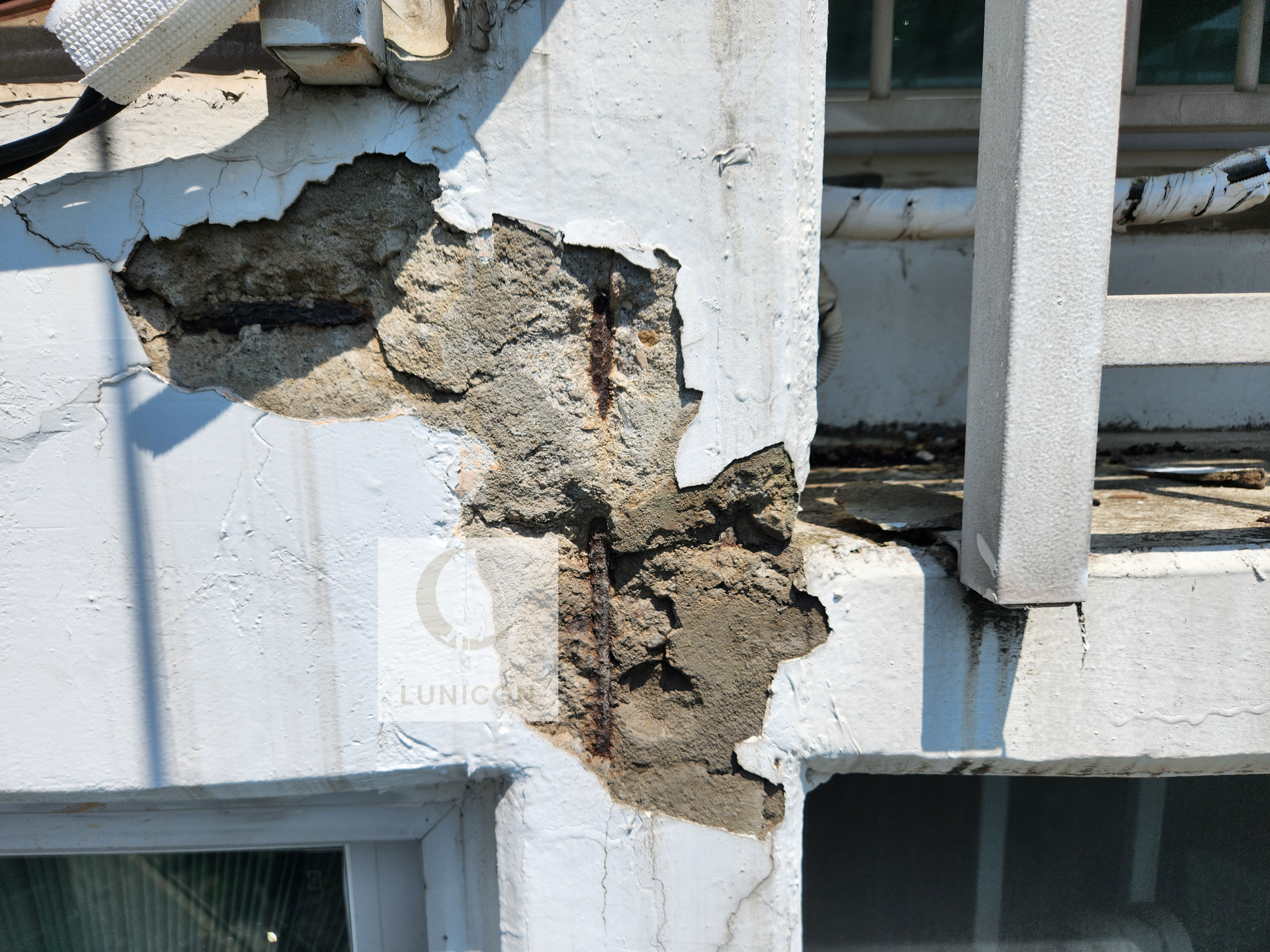 또한 층간 콜드조인트에는 크랙에 의한 도장 박리가, 매립 철근 부위에서는 심각한 부식이 관찰되었습니다.