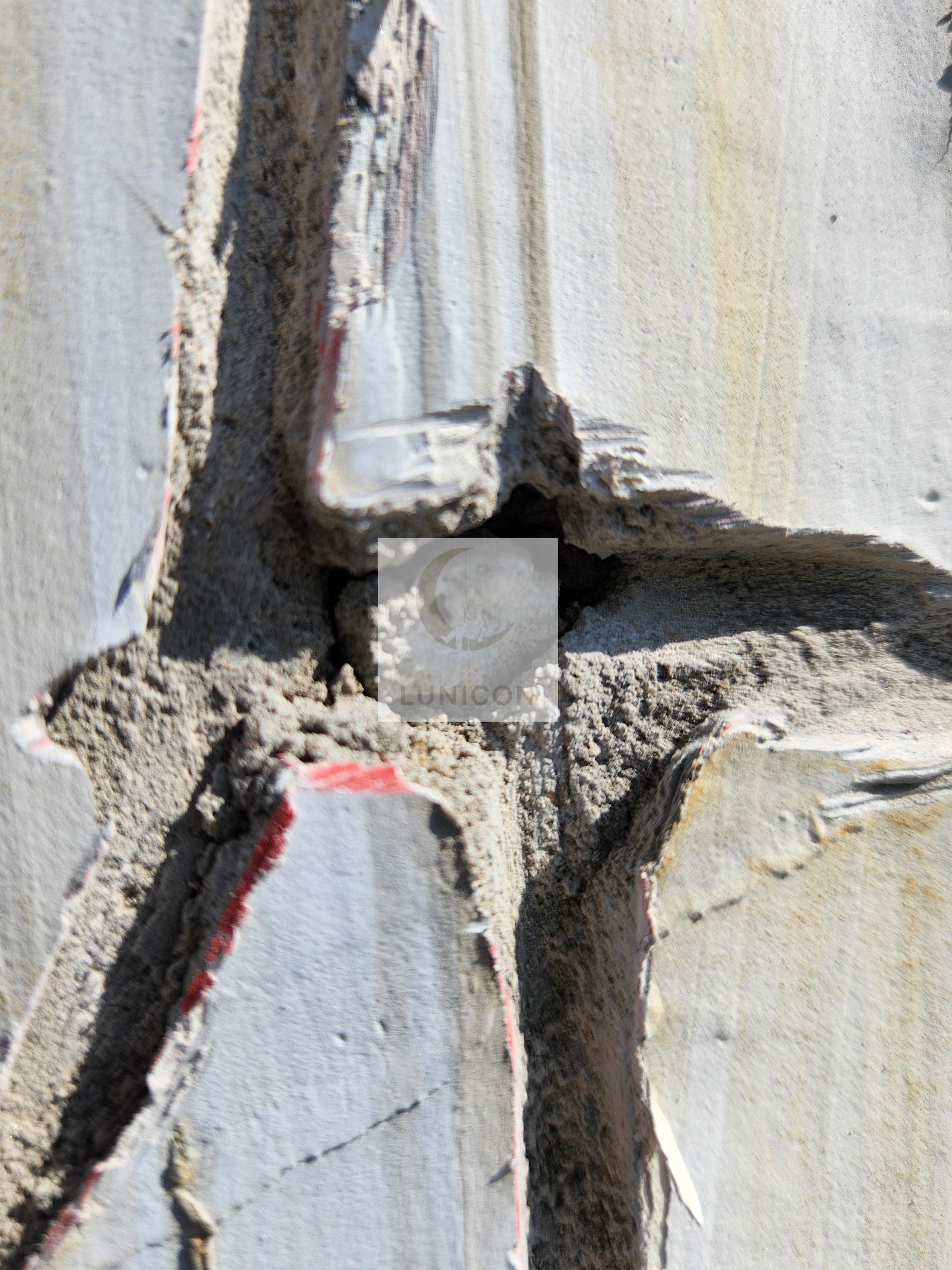 이번 현장에서 V컷팅을 진행해 기존 크랙을 확장하자, 숨어 있던 심층 크랙이 추가로 확인되었습니다.
